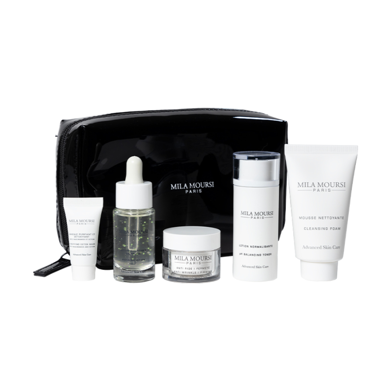 Очищающая Пенка c Гиалуроновой кислотой: Aqua (Water), Sodium Cocoyl Isethionate, Glyceryl Stearate Se, Cetyl Alcohol, Stearic Acid, Palmitic Acid, Butylene Glycol, Disodium Laureth Sulfosuccinate, Prunus Armeniaca (Apricot) Kernel Oil, Sodium Lauryl Sulfoacetate, Panthenol, 1,2-Hexanediol, Caprylyl Glycol, Hydroxyacetophenone, Parfum(Fragrance), Xanthan Gum, Allantoin, Bisabolol, Sodium Benzoate, Pantolactone, Sodium Hyaluronate, Citric Acid Балансный Тоник с Молочной и Салициловой кислотой: Aqua (Water), Isotridecyl Isononanoate, Glycerin, Sodium Lactate, Hexylene Glycol, Benzyl Alcohol, Propylene Glycol Isoceteth-3 Acetate, PEG-25 Hydrogenated Castor Oil, PEG-40 Hydrogenated Castor Oil, Sodium Citrate, Lactic Acid, Allantoin, Salicylic Acid, Parfum (Fragrance), Glycerin, Menthol, Menthyl Lactate, Sorbic Acid, Limonene, Linalool Выравнивающий Лосьон с Альфа-гидрокси кислотами: Aqua (Water), Lactic Acid, Glycolic Acid, Butylene Glycol, Glycereth-7 Triacetate, Sodium Hydroxide, Arginine, Sclerotium Gum, Hydroxyacetophenone, Ppg-5-Ceteth-20, Hydroxyethylcellulose, 1,2-Hexanediol, Caprylyl Glycol, Sodium PCA, Sodium Benzoate, Mannitol, Allantoin, Dipotassium Glycyrrhizate, Glycerin, Sodium Hyaluronate, Cellulose, Triticum Vulgare (Wheat) Germ Extract, Tocopheryl Acetate, Hydroxypropyl Methylcellulose, Pentylene Glycol, Ci 77288 (Chromium Oxide Greens), Olea Europaea (Olive) Fruit Oil, Lippia Citriodora Leaf Extract, Citric Acid, Camellia Sinensis Leaf Extract, Melissa Officinalis Leaf Extract, Potassium Sorbate Глобальный Антивозрастной Крем Тройного действия с комплексом ММ-5: УВЛАЖНЕНИЕ - ЛИФТИНГ - БОРЬБА С МОРЩИНАМИ: Aqua (Water), Corylus Avellana (Hazel) Seed Oil, C13-15 Alkane, Sesamum Indicum (Sesame) Seed Oil, Decyl Oleate, Dimethicone, Hydrogenated Polyisobutene, Cetyl Palmitate, Octyldodecanol, Hydrogenated Starch Hydrolysate, Glyceryl Stearate, Butyrospermum Parkii (Shea) Butter, Hydrogenated Coconut Oil, Glycerin, Cetearyl Alcohol, Beheneth-25, Peg-100 Stearate, Butylene Glycol, Dimethicone/Vinyl Dimethicone Crosspolymer, Hydroxyacetophenone, Propanediol, Cetearyl Glucoside, Parfum (Fragrance), Caprylyl Glycol, Sodium Benzoate, 1,2-Hexanediol, Ornithine, Acrylates/C10-30 Alkyl Acrylate Crosspolymer, Tocopheryl Acetate, Phospholipids, Sodium PCA, Ethylene/Propylene/Styrene Copolymer, Butylene/Ethylene/Styrene Copolymer, Tocopherol, Helianthus Annuus (Sunflower) Seed Oil, Sodium Hydroxide, Glycolipids, Xanthan Gum, Sodium Hyaluronate, Citric Acid, Carbomer, Sodium Lactate, Polysorbate 20, Sodium Anisate, Sodium Levulinate, Bht, Acetyl Hexapeptide-8, Methylsilanol Mannuronate, Hydrogenated Palm Glycerides Citrate, Isomalt, Palmitoyl Tripeptide-1, Methylpropanediol, Palmitoyl Tetrapeptide-7, Hydrolyzed Elastin, Sodium Citrate, Soluble Collagen, Lecithin, Rhododendron Ferrugineum Leaf Cell Culture Extract, Dextran, Trifluoroacetyl Tripeptide-2, Alpha-Isomethyl Ionone, Cinnamyl Alcohol, Citronellol, Eugenol, Geraniol, Hydroxycitronellal, Hydroxyisohexyl 3-Cyclohexene Carboxaldehyde, Benzyl Salicylate Интенсивная Очищающая Детокс маска с Ниацинамидом, Эктоином и Белой Глиной: Aqua (Water), Kaolin, Caprylic/Capric Triglyceride, Glyceryl Stearate SE, Pentylene Glycol, Butylene Glycol, Niacinamide, Ectoin, Magnesium Aluminum Silicate, Hydroxyacetophenone, Sodium Benzoate, Xanthan Gum, 1,2-Hexanediol, Caprylyl Glycol, Allantoin, Bisabolol, Copper PCA, Zinc PCA, Rosmarinus Officinalis Leaf Oil, Magnesium Aspartate, Zinc Gluconate, Diethylhexyl Syringylidenemalonate, Glycerin, Copper Gluconate, Citric Acid, Sodium Hydroxide, Zingiber Officinale (Ginger) Root Extract, Potassium Sorbate Черная Косметичка Mila Moursi