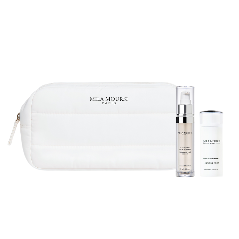 Этот эксклюзивный набор средств для ухода за кожей включает интенсивную сыворотку с био-пептидным комплексом (30 мл), которая стимулирует выработку коллагена, укрепляет структуру кожи, повышает её упругость и эластичность, а также придаёт мгновенное сияние, и увлажняющий лифтинг-тоник (50 мл), подготавливающий кожу к нанесению сыворотки, усиливающий эффект основного ухода, обеспечивающий длительное увлажнение и улучшение тонуса кожи; в комплекте стильная белая нейлоновая косметичка для удобного хранения средств.